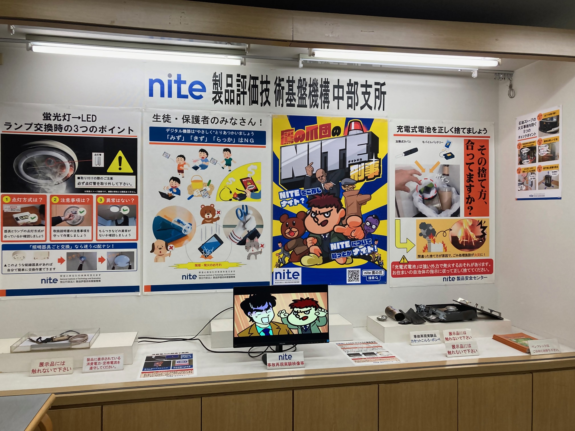 企画展示コーナーでは、独立行政法人製品評価技術基盤機構(nite)の協力を得て、製品事故から身を守るためのパネル展示を2026年5月末まで行っています。