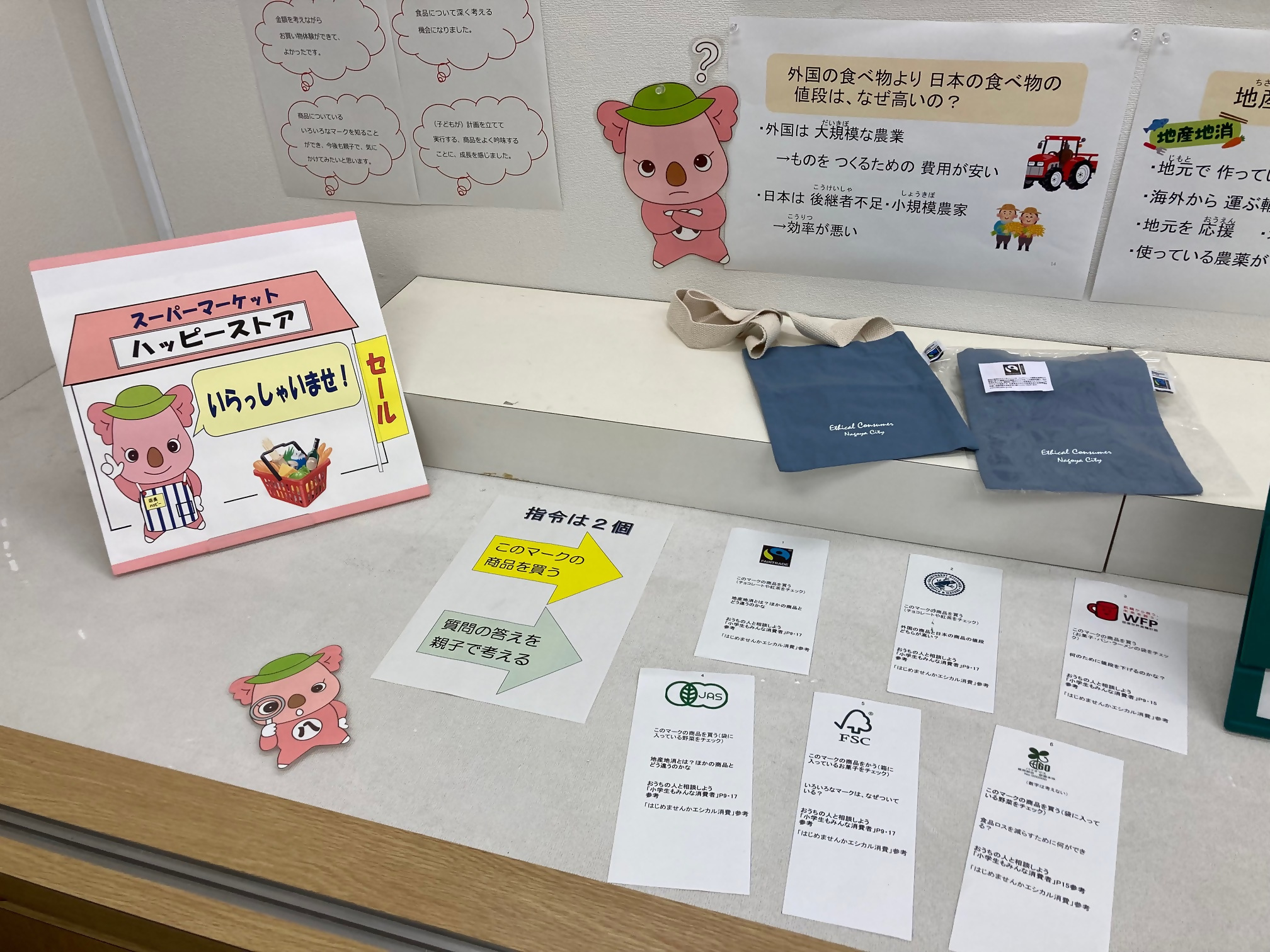 「おやこ消費者教室」は小学生とその保護者を対象に、買い物体験やお金の使い方を考える講座で、年代に合わせて実施しています。展示では小学4~6年生を対象に実施した「買い物ミッション!~予算1500円で夕飯の材料4人分買おう~」の講座の流れや実際に使用した教材、参加された皆さんの声を紹介しています。ぜひご覧ください。