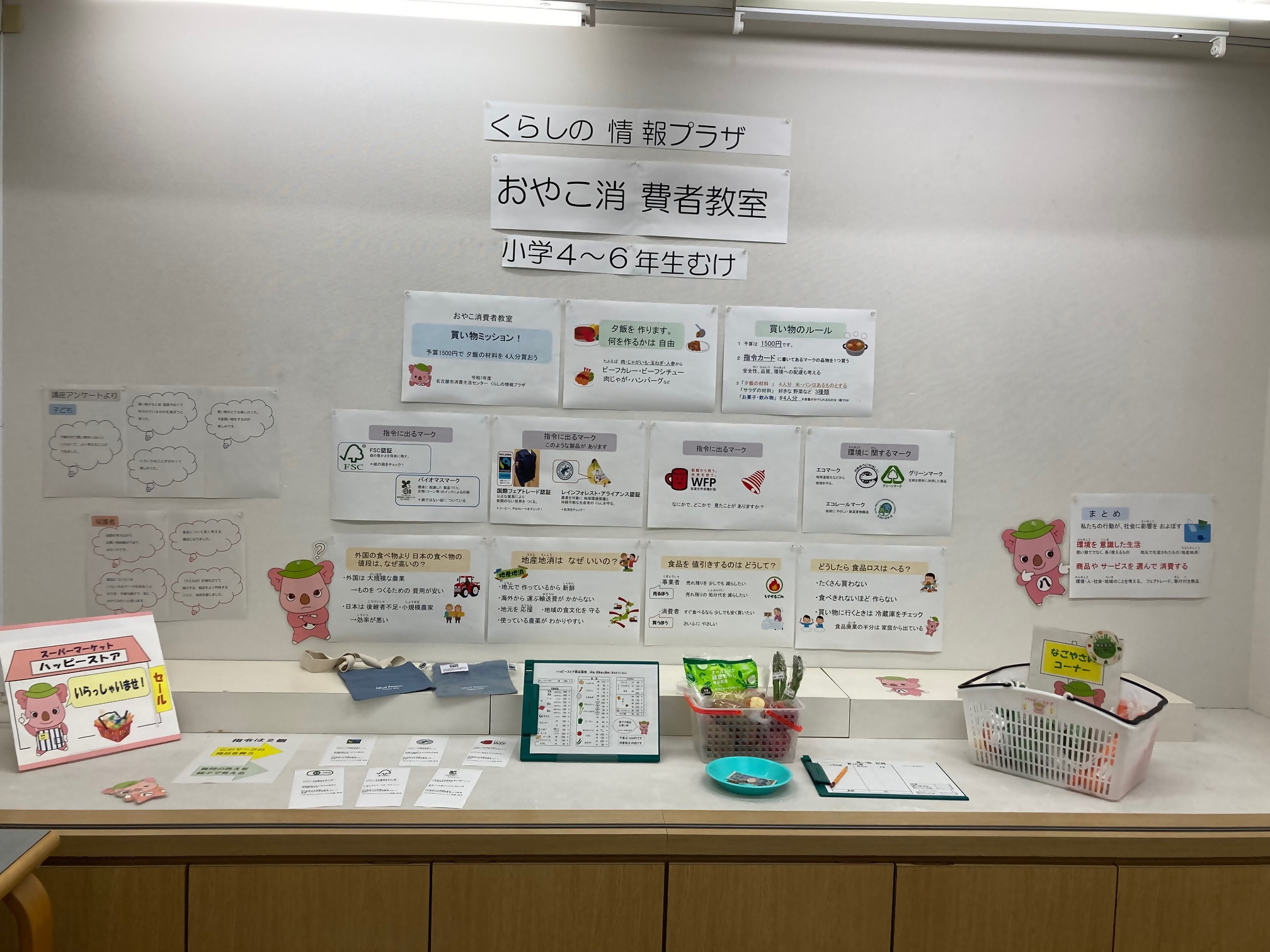 企画展示コーナーでは、くらしの情報プラザで企画・公募している「おやこ消費者教室」の紹介展示を行っています。
