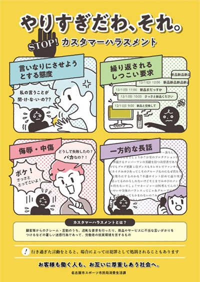 名古屋市では、カスタマーハラスメントのない健全な社会を目指すため、オリジナルの啓発ポスターを作成しました。