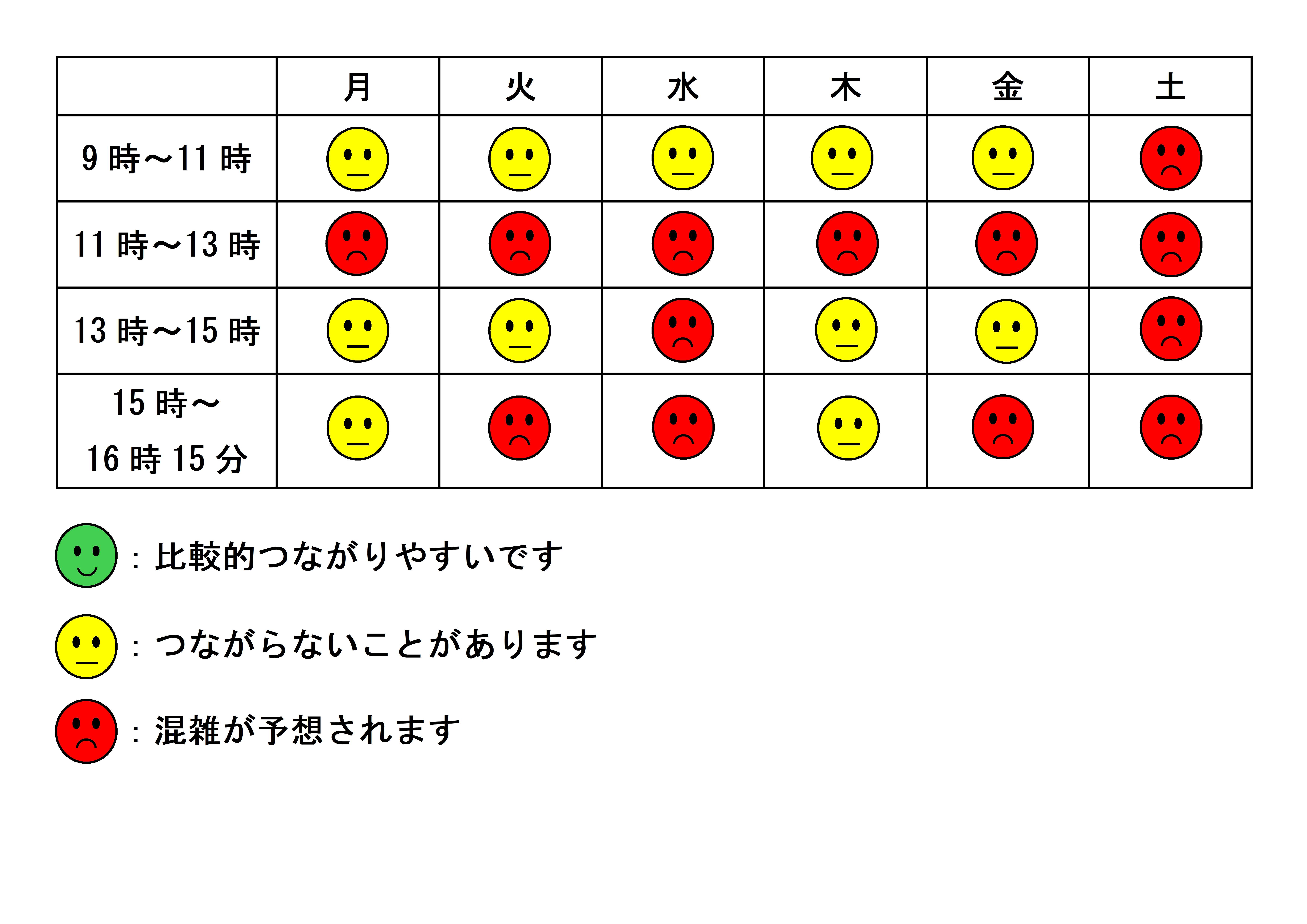 混雑状況はあくまでも目安です。状況によってはつながりにくい場合もあります。